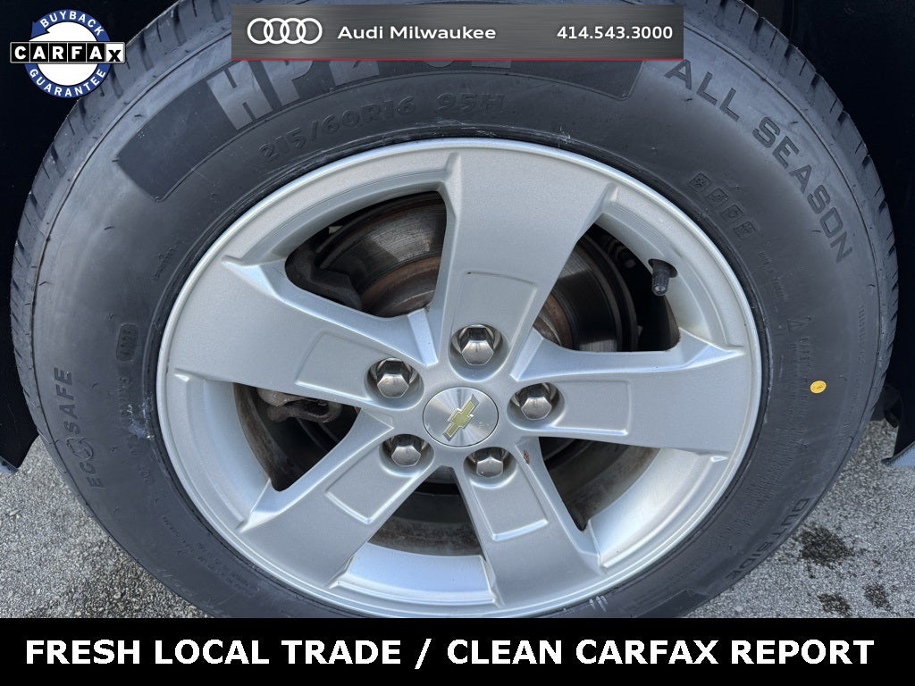 Jet Black/ Titanium w/Premium Cloth Seat Trim, 16 Aluminum Wheels, 6 Speakers, ABS brakes, Air Conditioning, Alloy wheels, AM/FM Stereo w/CD Player & MP3 Playback, Audio System Feature, Chevrolet MyLink Touch, Compass, Dual front impact airbags, Dual front side impact airbags, Electronic Stability Control, Fully automatic headlights, Outside temperature display, Panic alarm, Power driver seat, Preferred Equipment Group 1LT, Rear window defroster, Security system, SIRIUSXM Satellite Radio, Speed control, Traction control.